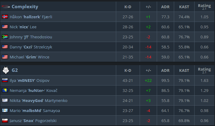 They had an incredible run in this tournament. In the group stage, they lost only one map against Complexity, taking down GamerLegion and Rare Atom on their way. In their quarter-final match against Virtus.pro, they didn’t show any weaknesses and won with a score of 2-0. The semi-final was against Complexity, and this time, G2 made it a clean 2-0 result, deserving themselves a spot in the Grand Final.