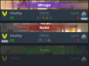 Their last match was very close, but both teams should’ve learned from that. Still, all the results say that Vitality is a better team, and they’ve proven it long-term with a 24-match win streak. We expect Vitality to win this match.