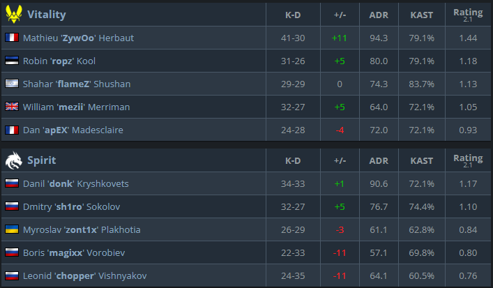 Vitality made it straight to the semi-final by beating Wildcard and MOUZ in a group stage. MOUZ was the only team that was able to win one map from Vitality. In their quarter-final match, they played against Spirit, and they closed it out with a score of 2-0 in their favor confidently.