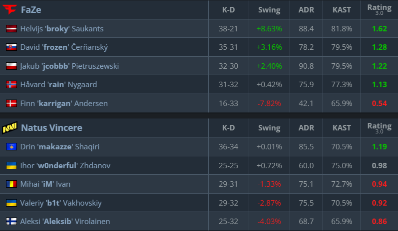 Previous Encounter & Player Stats – FaZe vs. Natus Vincere