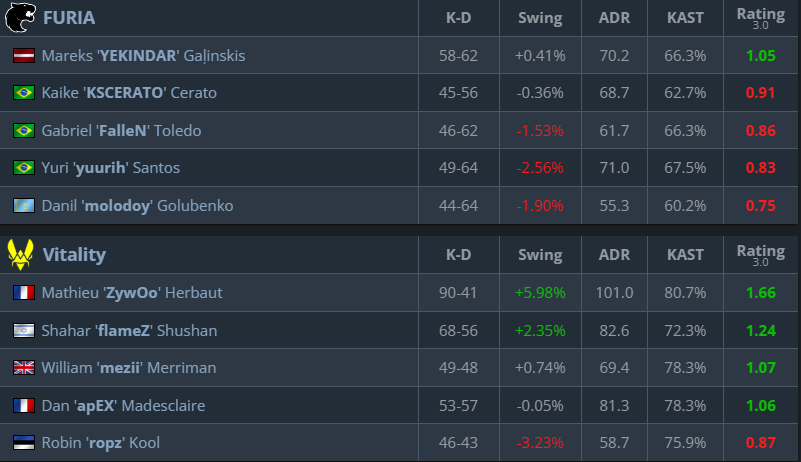 Previous Encounter & Player Stats – FURIA vs. Vitality
