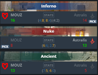 MOUZ confidently won two of the first games they played but then lost two in a row against FaZe and Falcons, and in a decider match, they took down Virtus.pro with a score of 2-1. Their quarter-final match against them was team paiN, and they successfully took them down. The semi-final match was probably the hardest for them against Astralis since it went all three maps, and these two teams were looking even on paper. Still, MOUZ, after losing a second map, then completely demolished Astralis on a third map, making it to the Grand Final.