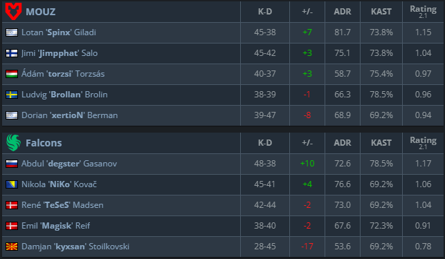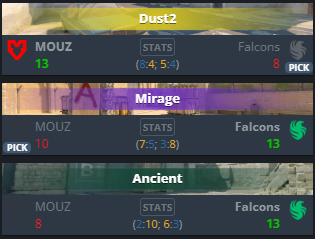 This match is hard to predict, but we would say that MOUZ playing their first tournament with a new in-game leader doesn’t give them an advantage, and it might play a bad joke with them in a best-of-five match against a top team like Falcons. Falcons showed great chemistry, and their in-game leader is much more experienced. We expect Falcons to win this match and take the trophy.