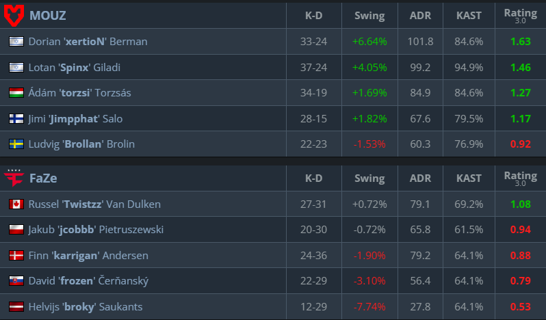 Previous Encounter & Player Stats – MOUZ vs. FaZe