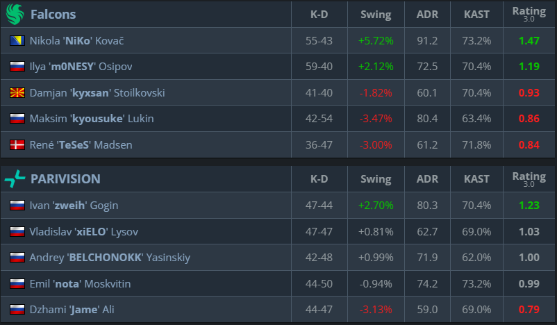 Previous Encounter & Player Stats – PARIVISION vs. Falcons