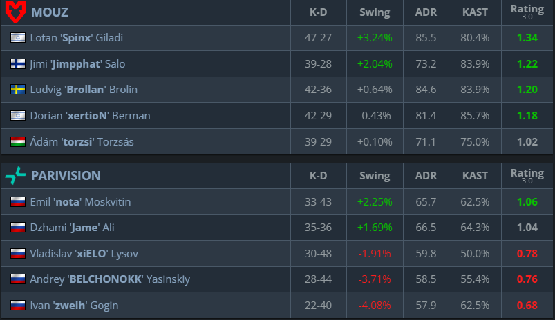 Previous Encounter & Player Stats – PARIVISION vs. MOUZ
