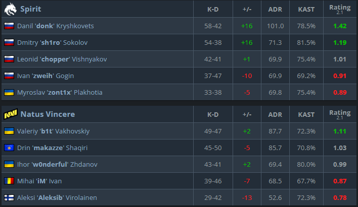 The semi-final match against Natus Vincere was again a show of two Spirit star players’ donk’ and ‘sh1ro’. By the end of the best-of-three game, they both were on top of the scoreboard, dominating the enemy team and fragging left and right. ‘zont1x’ didn’t look like he had his best game. Still, he wasn’t needed when his teammates carried like that, but he will be in a Grand Final, and hopefully he can bring his best game. They’re in great shape, and it seems like only ‘zont1x’ has to bring his best game to the finals.