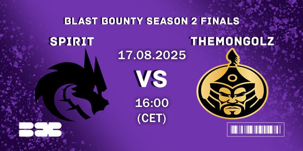 The least expected Grand Final will happen at BLAST Bounty Season 2 as TheMongolZ made it through Vitality, and now they will face off against Spirit, who won the most recent tournament, IEM Cologne 2025. As for Spirit, this will be their chance to take a second trophy in a row, and for TheMongolZ, it might become their first trophy this year. Last time these two teams met each other at ESL Pro League, Spirit won with a score of 2-0.