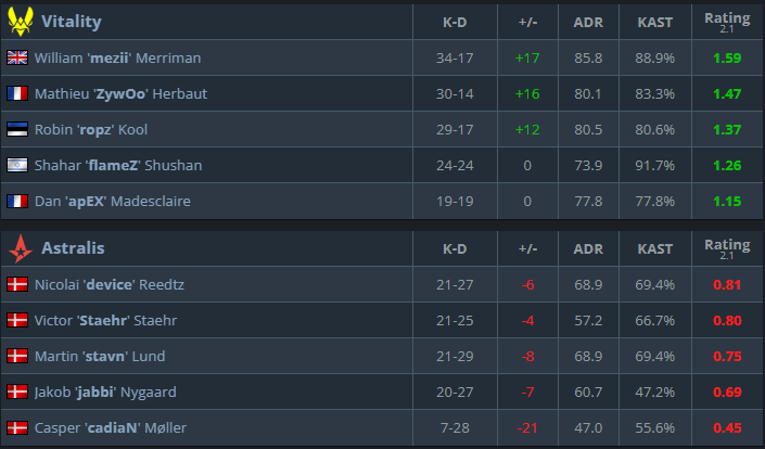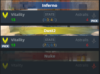 Vitality was a long time ahead of Astralis, and it doesn’t seem like Astralis is ready to change that at this point. The individual skill, experience, and recent results tell us that Vitality is a clear favorite to win this match. We expect Vitality to win this match.