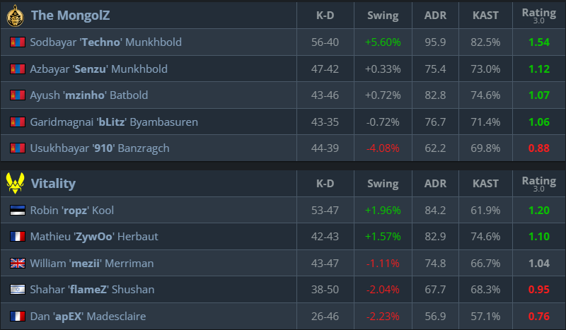 Previous Encounter & Player Stats – Vitality vs. TheMongolZ