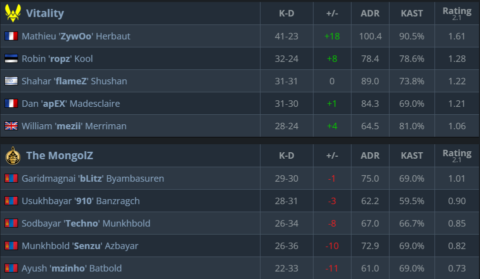 Vitality is clearly a more experienced team here, with better individual players who have much more experience playing the playoff stages of big tournaments. TheMongolZ has yet to prove itself against the best teams. We expect Vitality to win this match.
