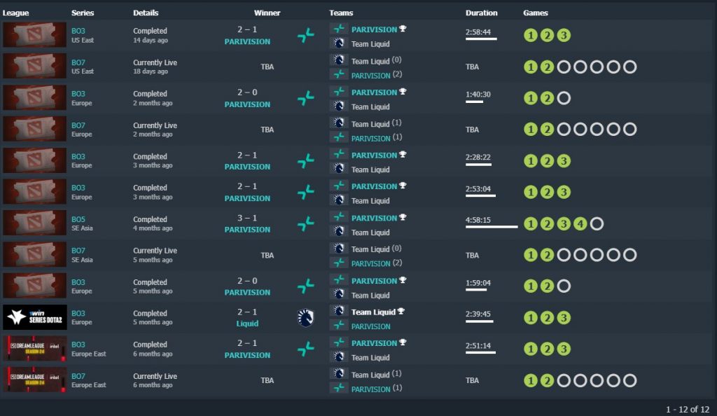 Overall, Team Liquid and PARIVISION have 12 matches against each other. Most of you probably expected Liquid to dominate in the matches, but this is not the case at all. In fact, the Western European team only has 1 victory against this opponent. On the other hand, PARIVISION won 7 matches. The remaining series ended in a draw.