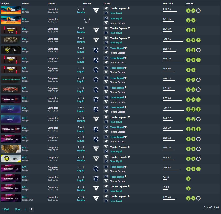 If we check the stats, we will see that Liquid has 24 victories, whereas Tundra has won this match 13 times. The remaining series ended in a draw.