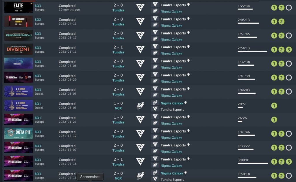 Prior to the current Nigma Galaxy vs Tundra Esports match, these two have met 13 times so far. Every single series was amazing to watch, but if you check the DotaBuff stats, you can see that Tundra is just on another level. The WEU squad defeated NGX 11 times, whereas their opponents only had 2 victories.
