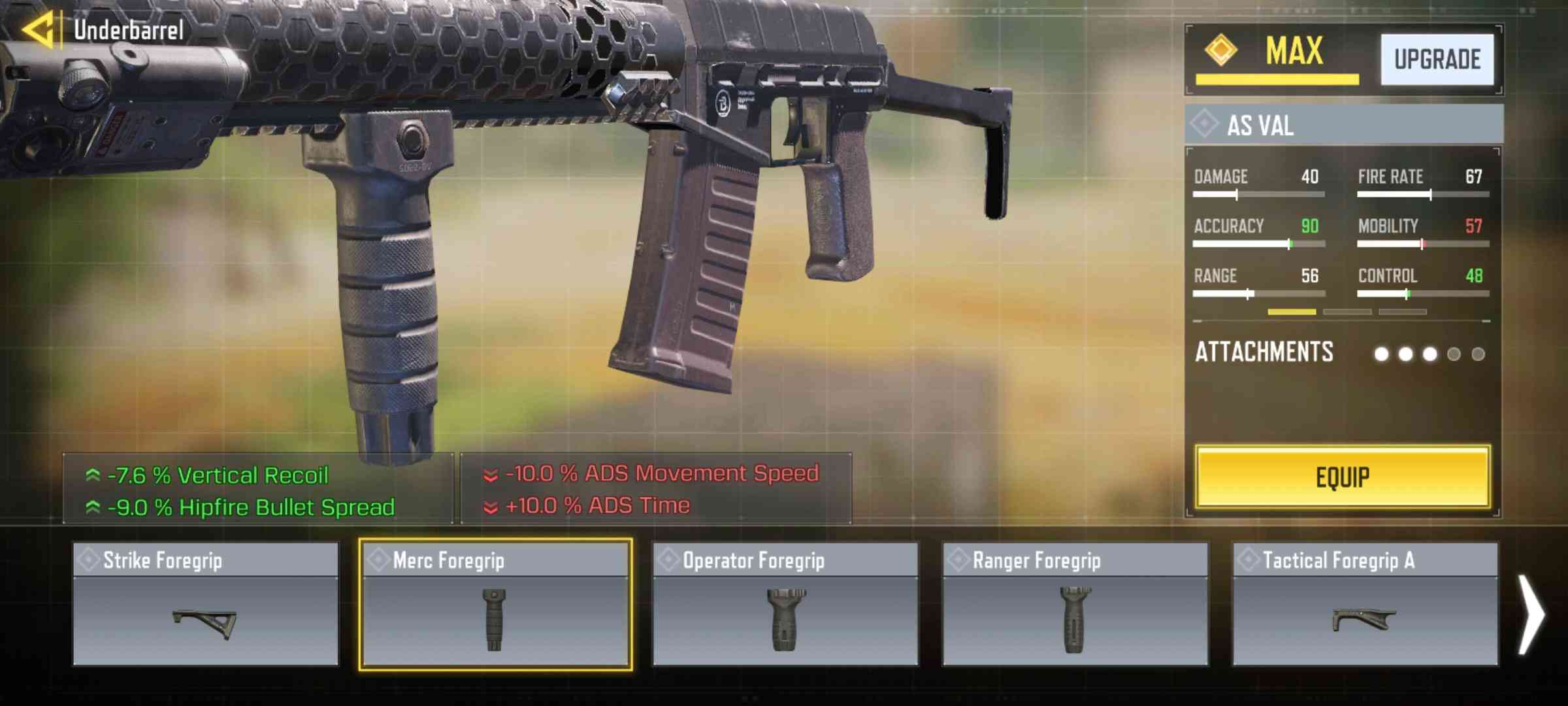 Underbarrels improve accuracy and reduce recoil. The Strike Foregrip is the most balanced, but other grips offer more control or hip-fire accuracy, depending on the player’s needs.