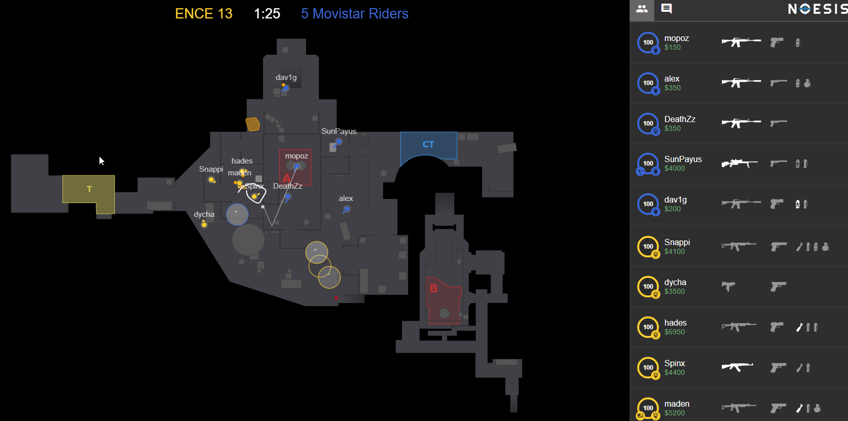 In around 20% of rounds, ENCE players throw 2x HEs around 1:45, which may cause a good chunk of damage. Sometimes, they even get rewarded with a kill.