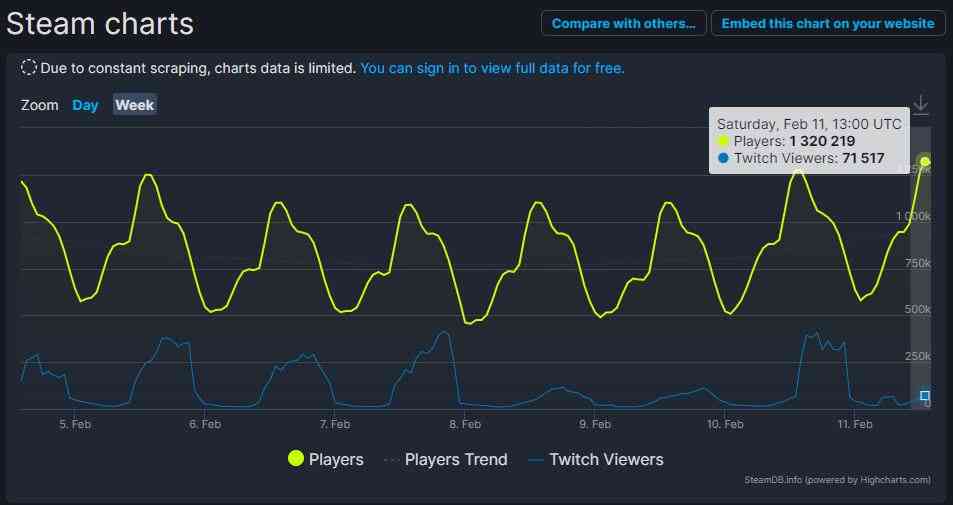 According to steamdb.info, the previous record was reached in April 2020 when a significant part of the world’s population was locked in their homes due to covid quarantine. Then, 1.3 million players entered the game.