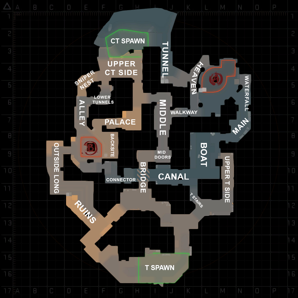 On the B site, CTs can be placed around backsite & palace which is a rotation path from middle, the way through Alley leads to Sniper Nest which is a prime AWPing spot to shut down in rushing attempts through Outside Long.