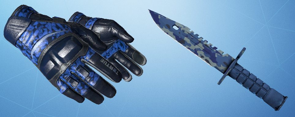 This is not an expensive combo for purchase. The pair of gloves naturally complements Blue Steel’s finish. The gloves look pretty well in Field-Tested condition, as for the knife, there’s no need to spend a lot of money, just buy a Well-Worn one.