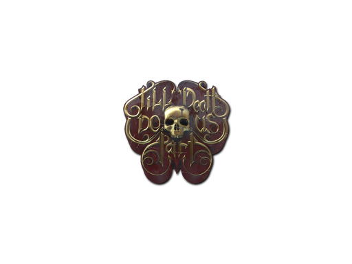 This sticker is one of the most popular CS2 stickers. The phrase “Till Death Do Us Part” is below the image of a skull holding a rose in its mouth.
