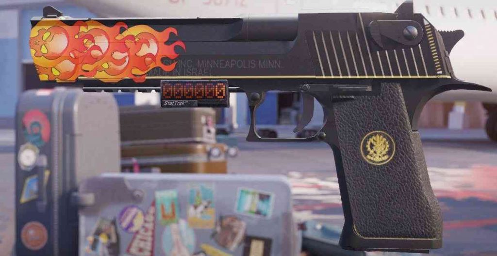 Desert Eagle Conspiracy costs from 6 dollars. Buy 5 Incineration stickers and add them to the barrel – you get a good copy of the Flame. Except that it costs 60 times cheaper than the original.