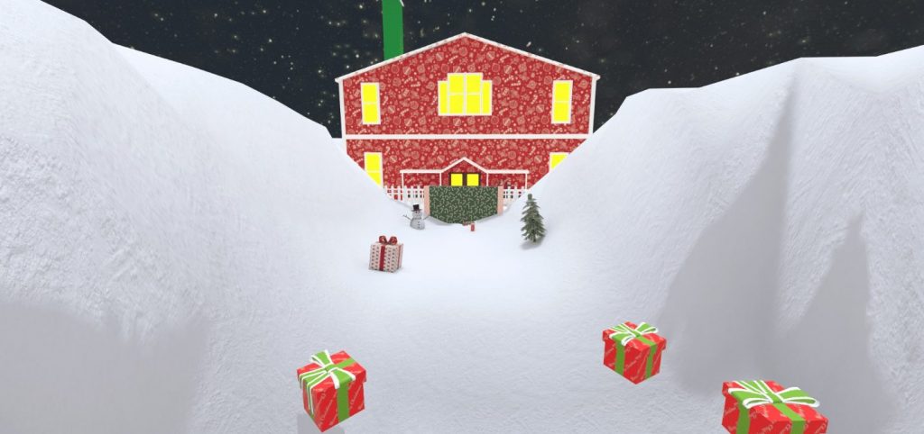 The map is built as a multi-stage Christmas adventure where humans have to survive and outrun a zombie horde through themed set-pieces. Humans spawn at the start of a festive route (village, facility, cave, depending on stage). A few seconds later, some players turn into zombies and start chasing.