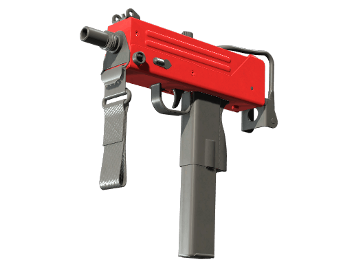 MAC-10 | Candy Apple features a simple, high-gloss red finish applied across most of the weapon’s body. There are no complex patterns, character illustrations, or layered graphics — the appeal comes entirely from its clean, solid color.