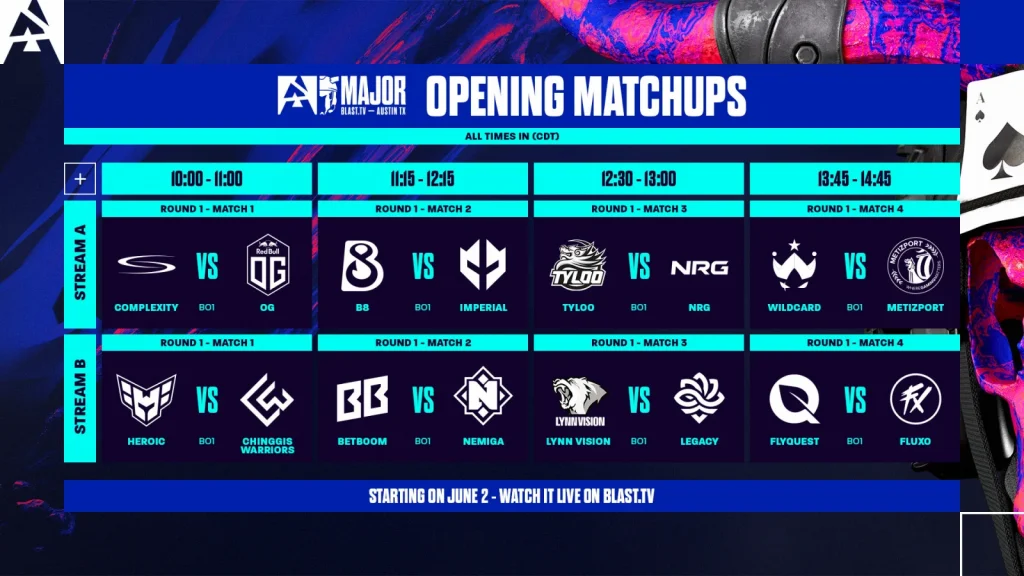BLAST Austin Major is a Counter-Strike 2 major event that will be held in Austin from June 3 to June 22. The total prize available is $1.25 million, and there will be 32 teams competing to find out which team is the best. While eight teams like Vitality, MOUZ, Spirit, Natus Vincere, and others deserved an invite straight to Stage 3, the rest must go through one or two stages before they get to the main stage.