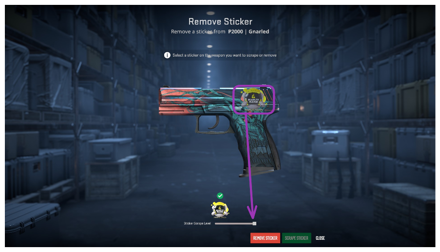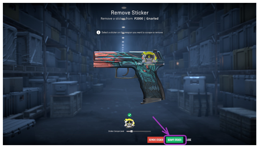 CS2 will ask for confirmation. At this point, the sticker is either faded (after one scrape) or fully destroyed. This CS2 sticker scraping explained process shows why players must think before confirming. The process is free but irreversible.