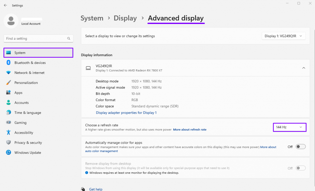 Pro Tip: Windows updates sometimes reset this to 60 Hz without notice.