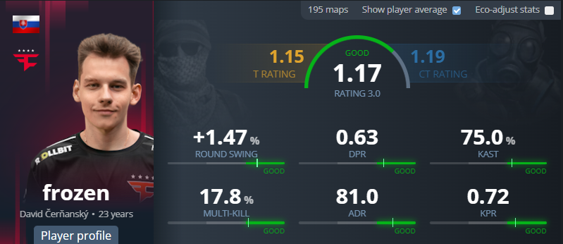 David “frozen” Čerňanský reaches the top 8, which is the highest placement of his career and another milestone in his steady rise among Counter-Strike’s elite players. In a year filled with highs and lows for FaZe Clan, frozen has proven himself as the team’s most consistent performer.