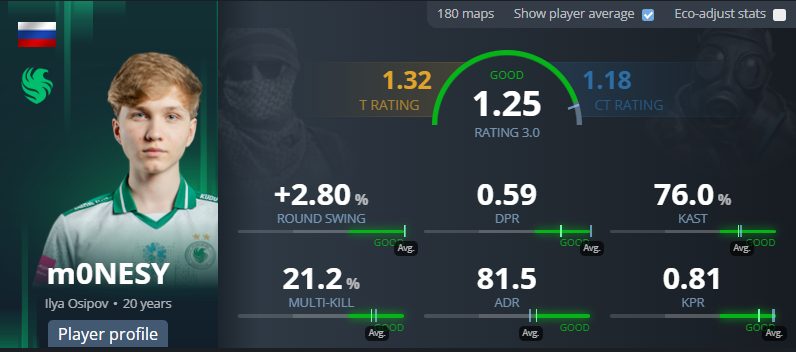 1.26 rating at big events and solid numbers against elite-level opponents secured him a place near the top, even if his impact at the very biggest stages occasionally fell just short of the absolute best, m0NESY remained one of the most dangerous and mechanically gifted players in the game.