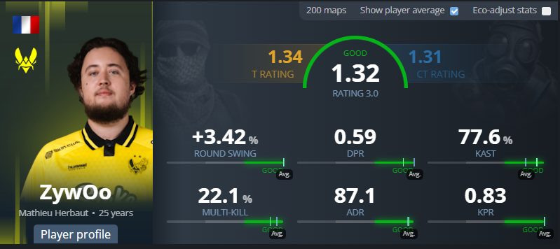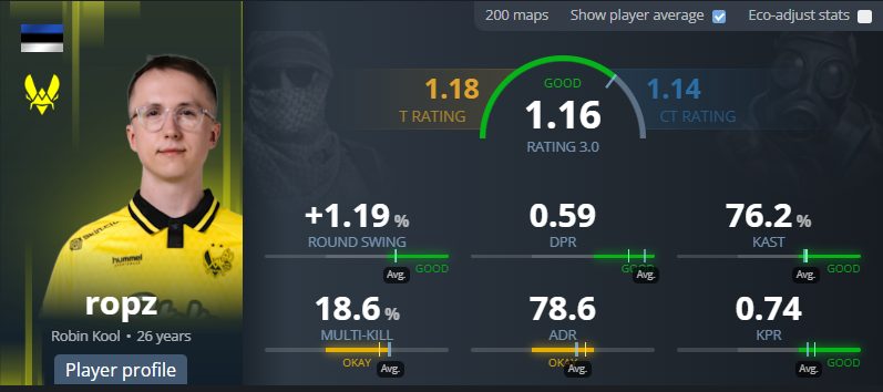 His game isn’t built on constant aggression or highlight plays. Instead, ropz thrives through positioning, timing, and smart decisions. That reliability at top tournaments, combined with his ability to shut down the enemy team stars, made him one of the key players during Vitality’s deepest tournament runs and earned him a place on the podium.