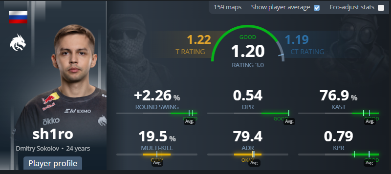 Consistency has always been sh1ro’s key thing, and 2025 was no different. He delivered reliable performances and consistently excelled in late-round situations at almost every event. That performance earned him a spot inside the top 5, together with a 1.20 rating and six EVP awards, which is more than any player outside the very top tier.