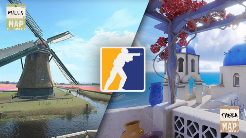 ‘Thera’, formerly known in CS:GO as ‘Santorini’, was created by Shawn ‘FMPONE’ Snelling, one of the designers of ‘Cache’. It is available in Competitive, Casual, and Deathmatch modes, along with Mills, created by ‘catfood’, the maker of Tuscan and Shipped maps.