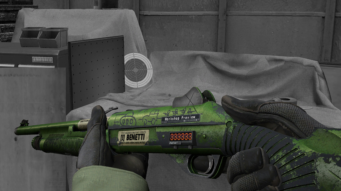 The Toy Soldier collection is based around the little green toys we used to play with as children. Which is why a childish drawing of soldiers and tanks can be seen when inspecting the skin in Battle-Scarred condition.