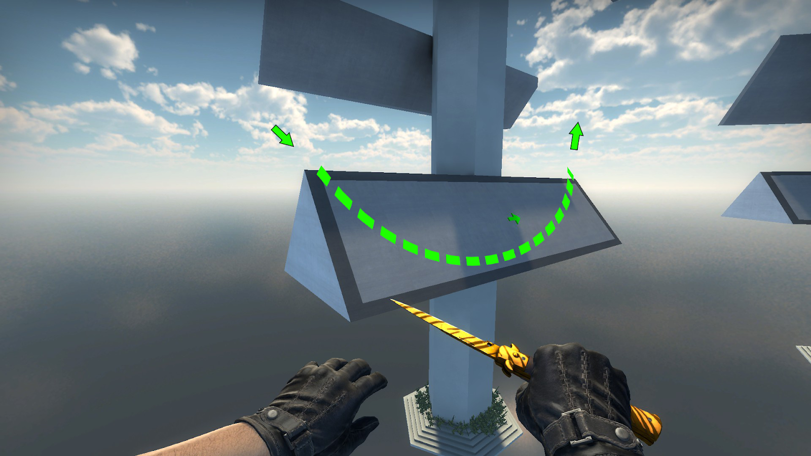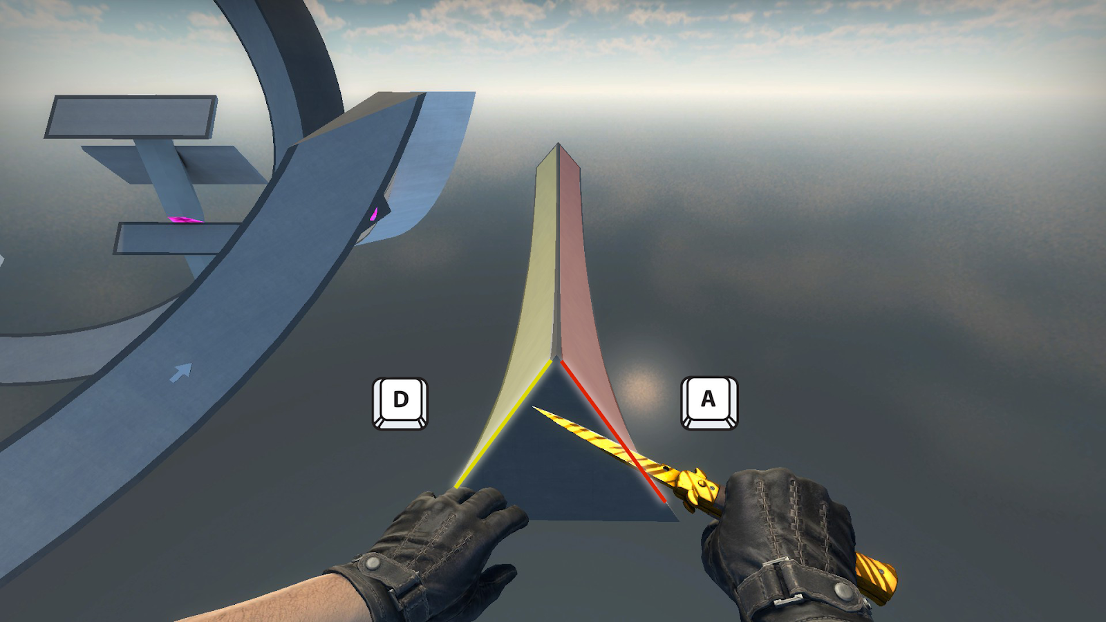 The principles of surfing in CS GO are clear and straightforward. You hold ‘D’ if you’re on the left side of the platform, and you have ‘A’ if you’re on the right side of the platform, and make sure NEVER press ‘W.’ Pressing ‘W’ while surfing will stop your movement and make you fall off the platform.