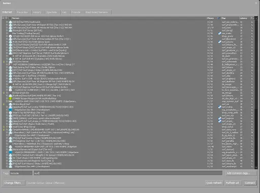 There are two ways to find surfing maps; The first is by browsing in the ‘Community Server Browser’ and searching for the keyword ‘surf.’