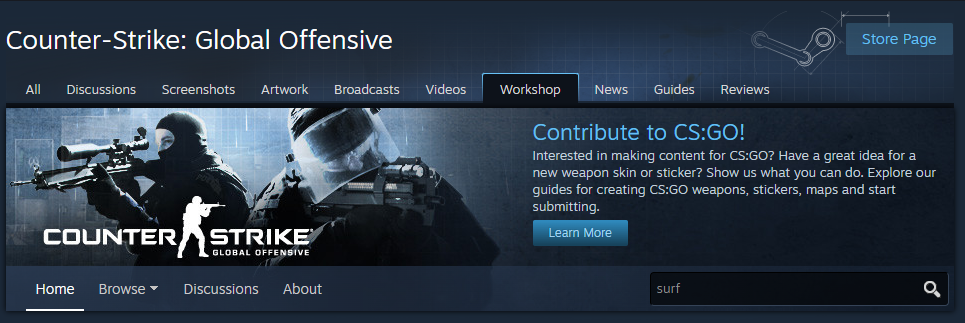 The second way to find surfing maps is by downloading a surf map from the CSGO Community Workshop and practicing offline without having other players on the server.
