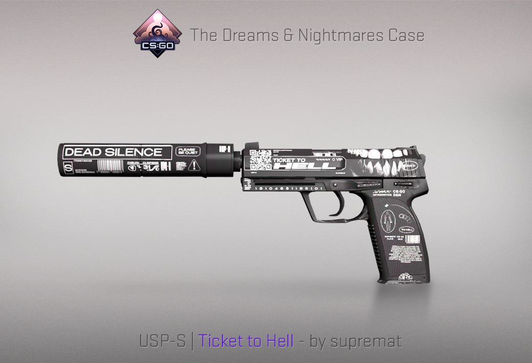 One of the community’s favorite skins in this case, The Ticket To Hell is undeniably clean and well designed.