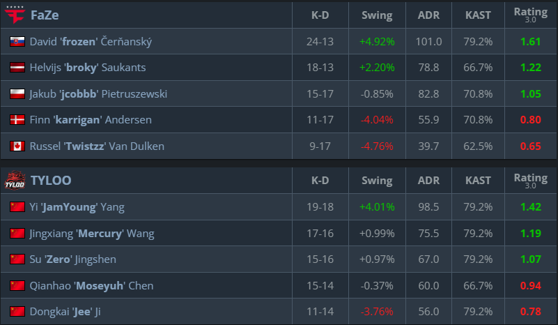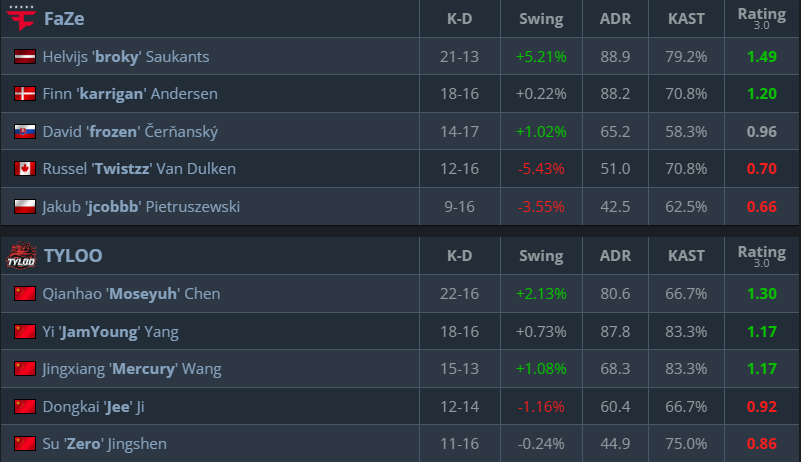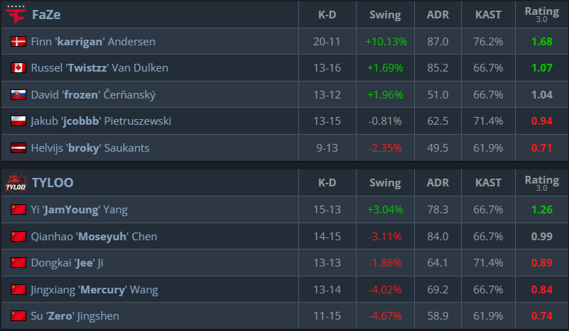 Every time FaZe tried to gain momentum, TYLOO stopped them. TYLOO won 13-11 and took the lead in the series.