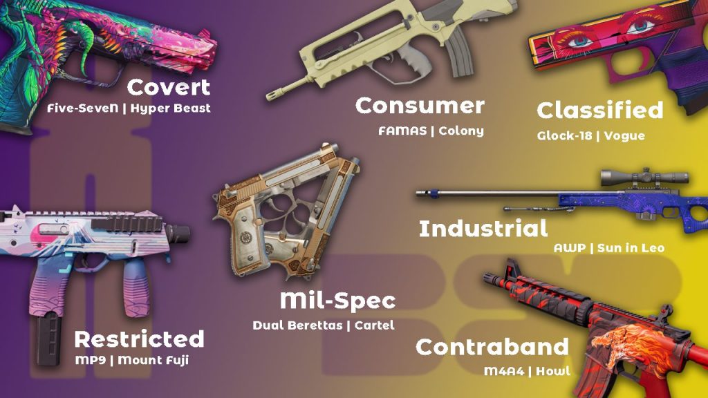 | Covert | Red | Ultra-rare (e.g. AK, AWP) |