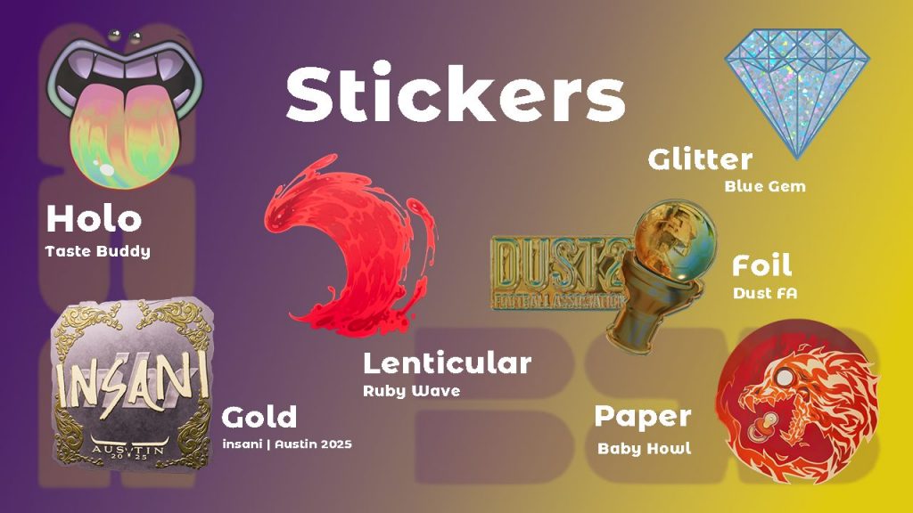 - Popular Stickers (Paper, Holo, Foil etc.)