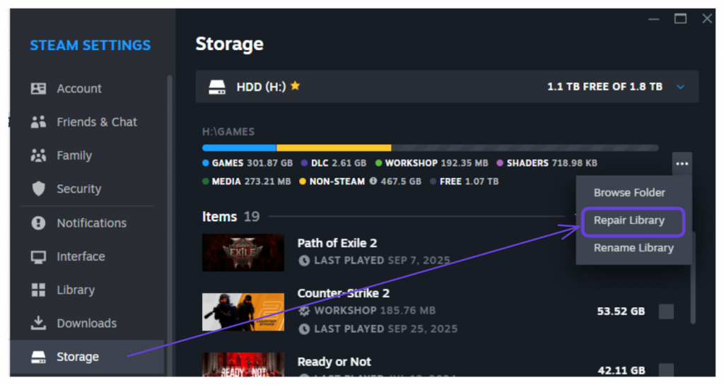 3. Repair the Steam Library Folder