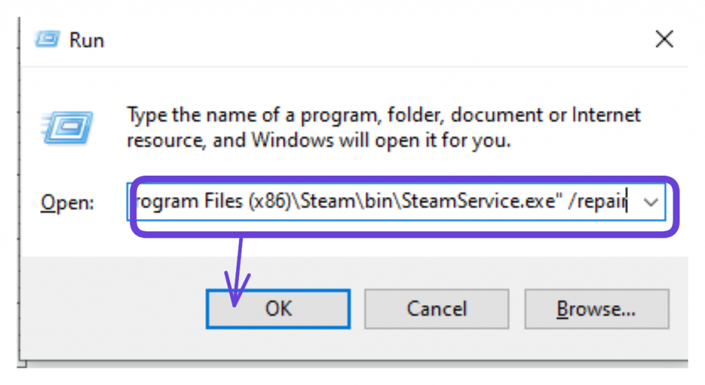 "C:\Program Files (x86)\Steam\bin\SteamService.exe" /repair (Change this based on where your SteamService.exe is installed)