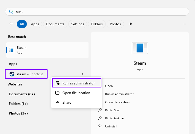 Why it helps: One of the oldest tricks in the book is to run Steam as an administrator. This allows it to properly manage its background processes, including the ones needed by VAC.