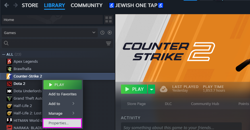 - Right-click on Counter-Strike 2 and select Properties.