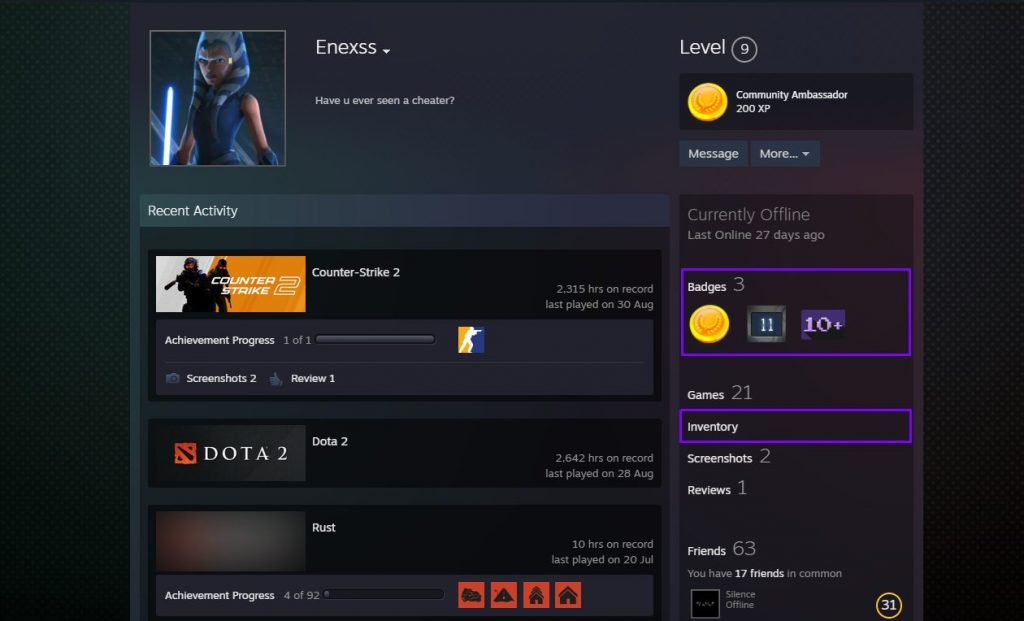 Verify the exact URL, Steam level, playtime, badges, and compare it to the real friend through your friends list.
