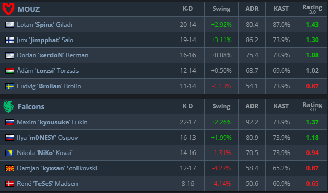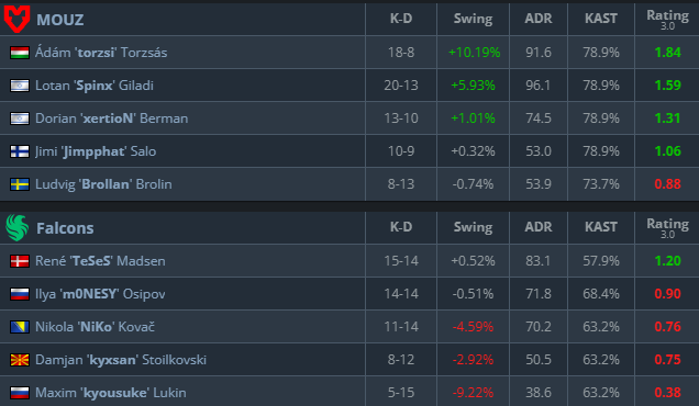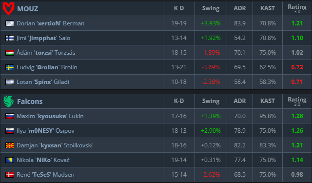 Falcons’ loss wasn’t for lack of effort. NiKo produced some of the most impactful rounds of the series, especially during Mirage’s comeback and Nuke’s mid-half surge. But the team struggled with slow starts and couldn’t match MOUZ’s pistol-round efficiency.
