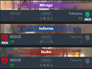 MOUZ looked unstoppable at the start of the series on Mirage. They stormed to an 11–4 lead, shutting down Falcons throughout the first half. However, closing the map in their favour became a problem for them. Falcons rallied behind a series of high-impact rounds from Nikola “NiKo” Kovač, chaining eight rounds in a row to steal the map 13–11.